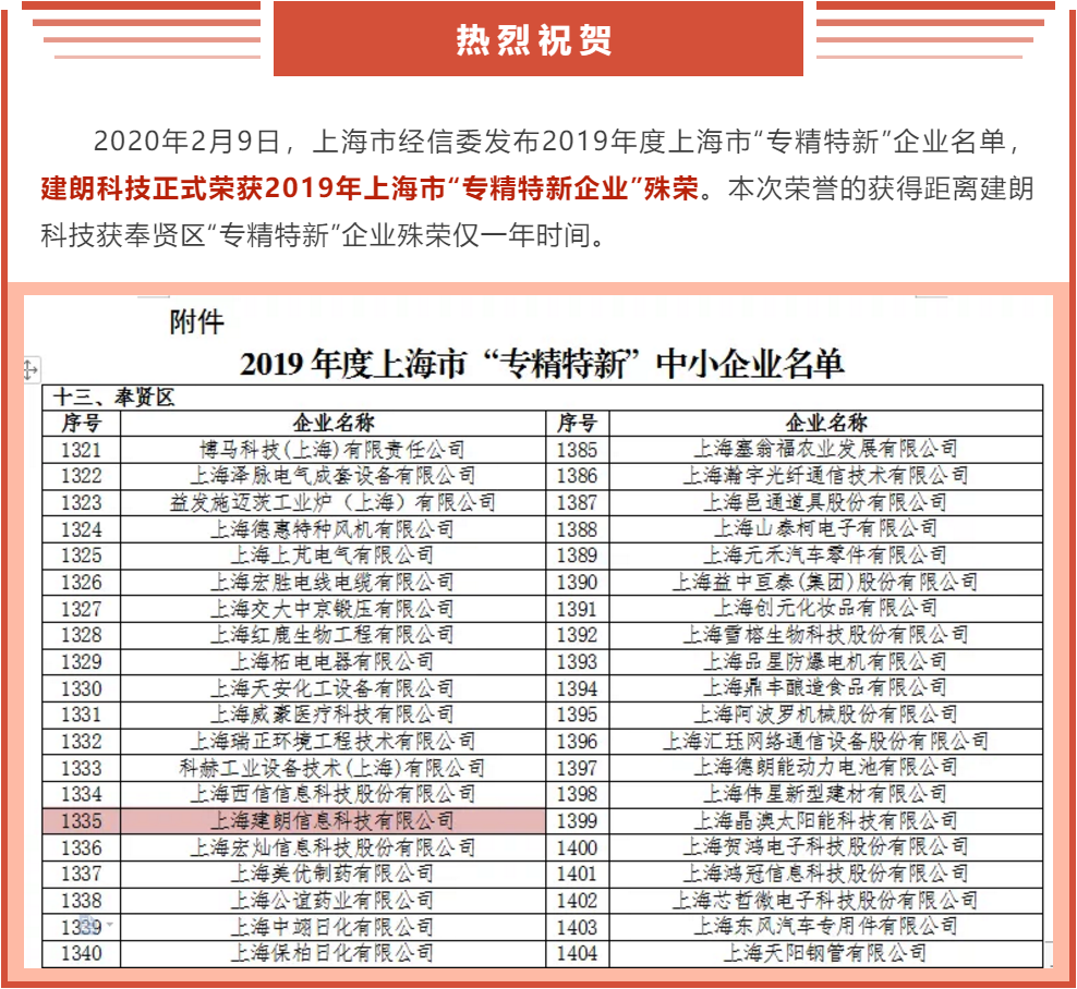 2019年建朗科技在公司領(lǐng)導(dǎo)層的正確指引下,全體員工上下齊心,不僅在業(yè)務(wù)上有了突飛猛進(jìn)的增長,同時也獲得了諸多包括軟件研發(fā)、CMMI3評估、3A企業(yè)信用等級等資質(zhì),以及第八屆中國創(chuàng)新創(chuàng)業(yè)大賽優(yōu)秀企業(yè)、2019上海市技術(shù)合同管理先進(jìn)單位、2019上海軟件核心競爭力企業(yè)等榮譽(yù),證明了建朗科技具備了“?!薄ⅰ熬?、“特”、“新”的能力,并得到了領(lǐng)導(dǎo)機(jī)關(guān)及行業(yè)的認(rèn)可。