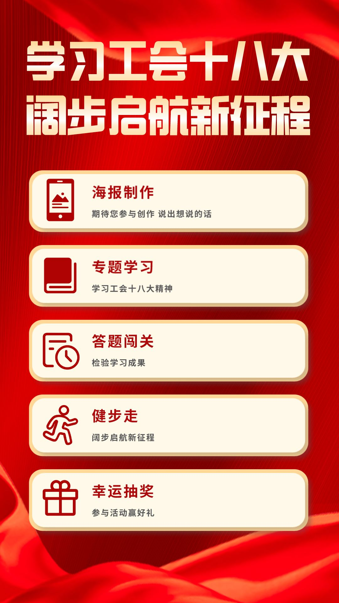 為助力貫徹落實中國工會第十八次全國代表大會精神,讓中央和大會精神深入基層、深入職工,掀起學(xué)習(xí)宣傳貫徹中國工會十八大精神的熱潮,建朗旗下萌工惠平臺特別策劃了“學(xué)習(xí)工會十八大 闊步啟航新征程”線上主題活動。