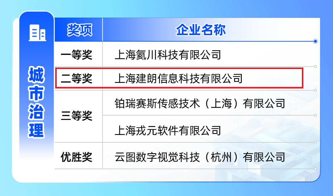 上海建朗信息科技有限公司被評為“城市治理”賽道“二等獎”。